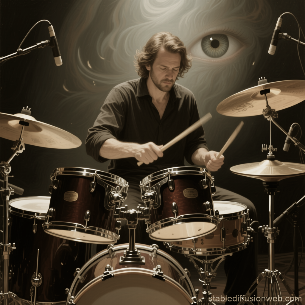 Une photo apaisante d’un batteur de dos, assis derrière son kit, lumière douce